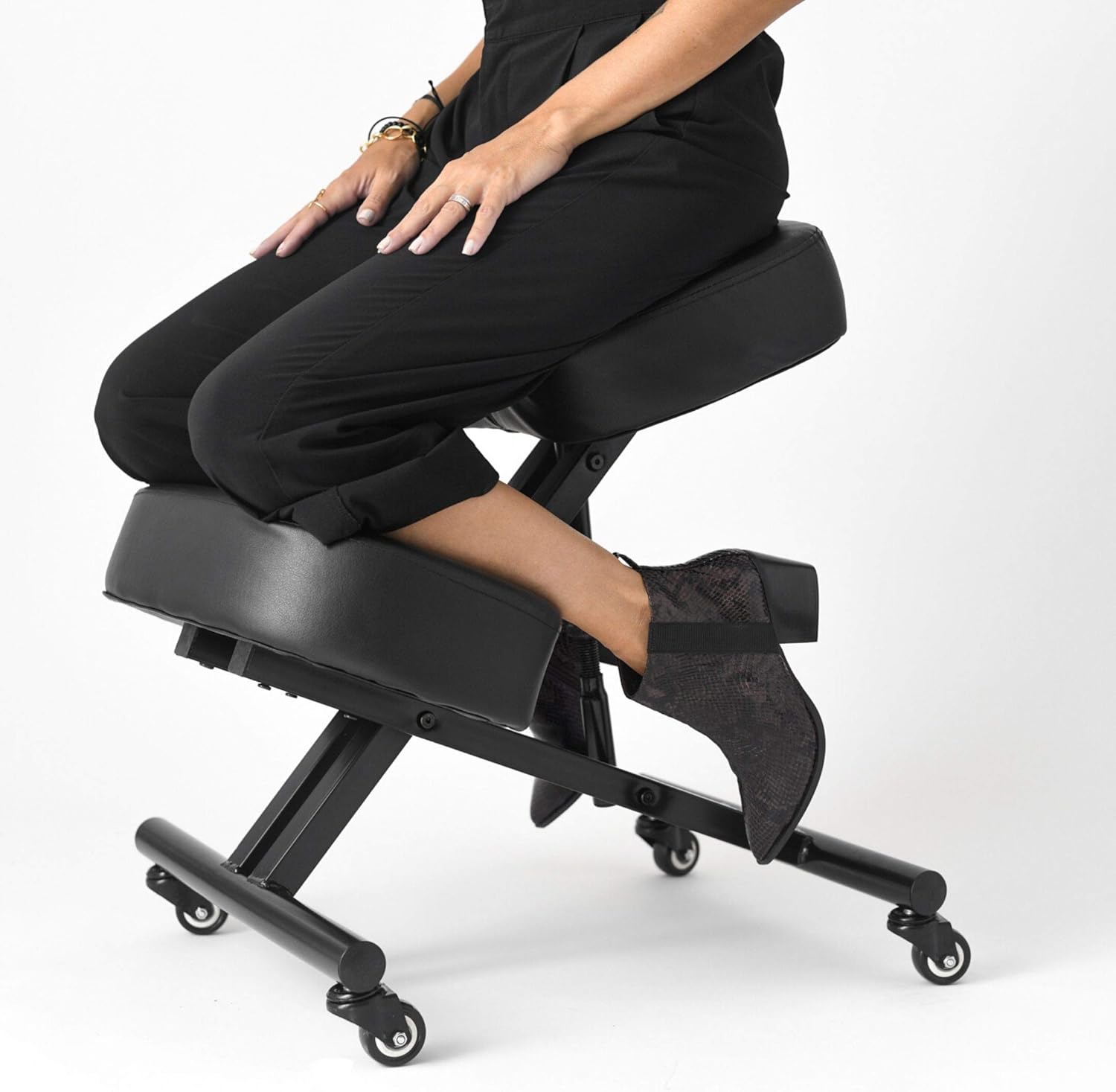 Ergonomic Black Kneeling Chair - Ergonomic solution for general and home office use. Ergonomic Kneeling Chair - Weve got your back and your knees shins and your behind Your ergonomic kneeling chair with back support is equipped with a mesh three-inch thick cushion to ensure excellent support.